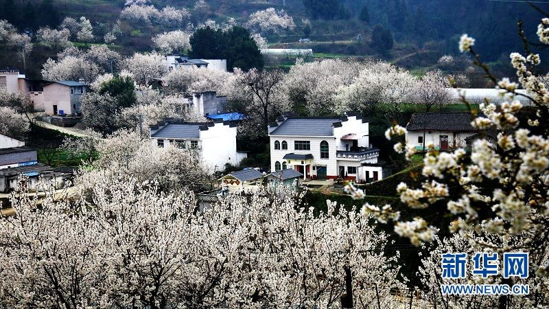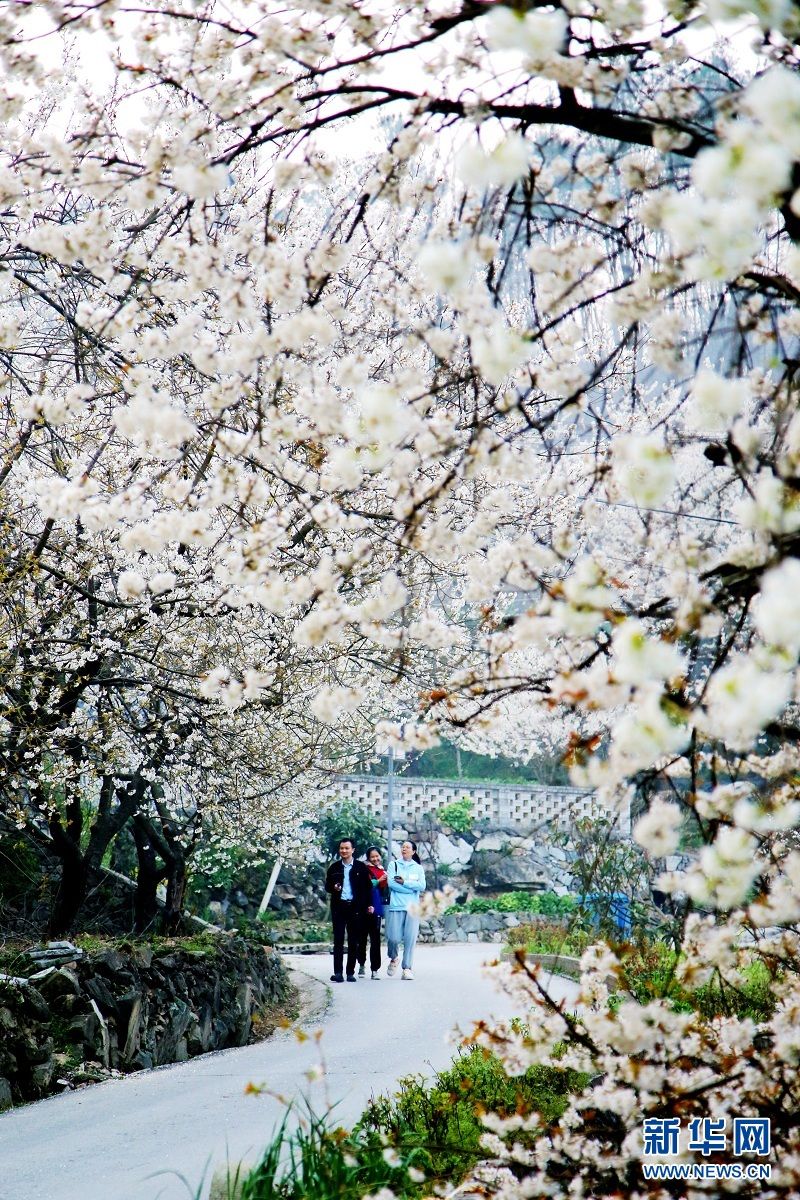 近日,湖北省十堰市郧阳区茶店镇樱桃沟村的野生樱桃树迎来盛花期,整个村庄掩映在花海中,美景如画。樱桃沟村2020年入选第二批全国乡村旅游重点村。(吴文华、曹忠宏)