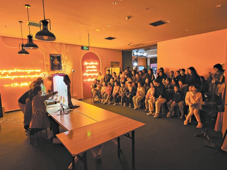 首都电影院副中心店内举行的皮影戏体验活动。