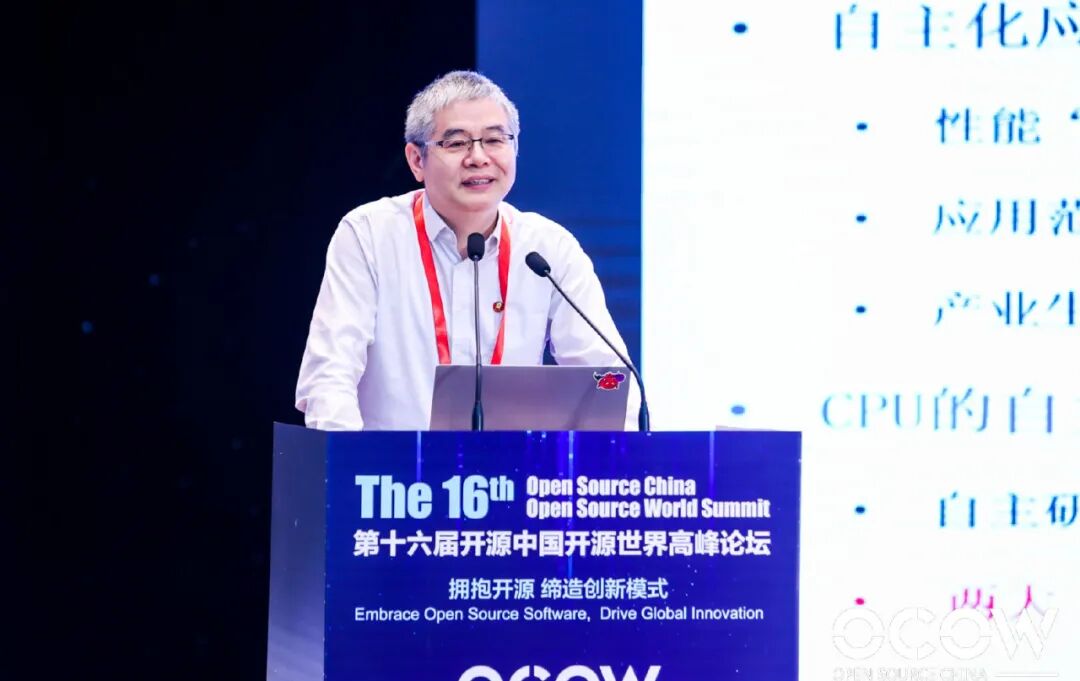 2021年6月17日胡伟武在第十六届开源中国开源世界高峰论坛上做《指令系统的自主和兼容》主题演讲