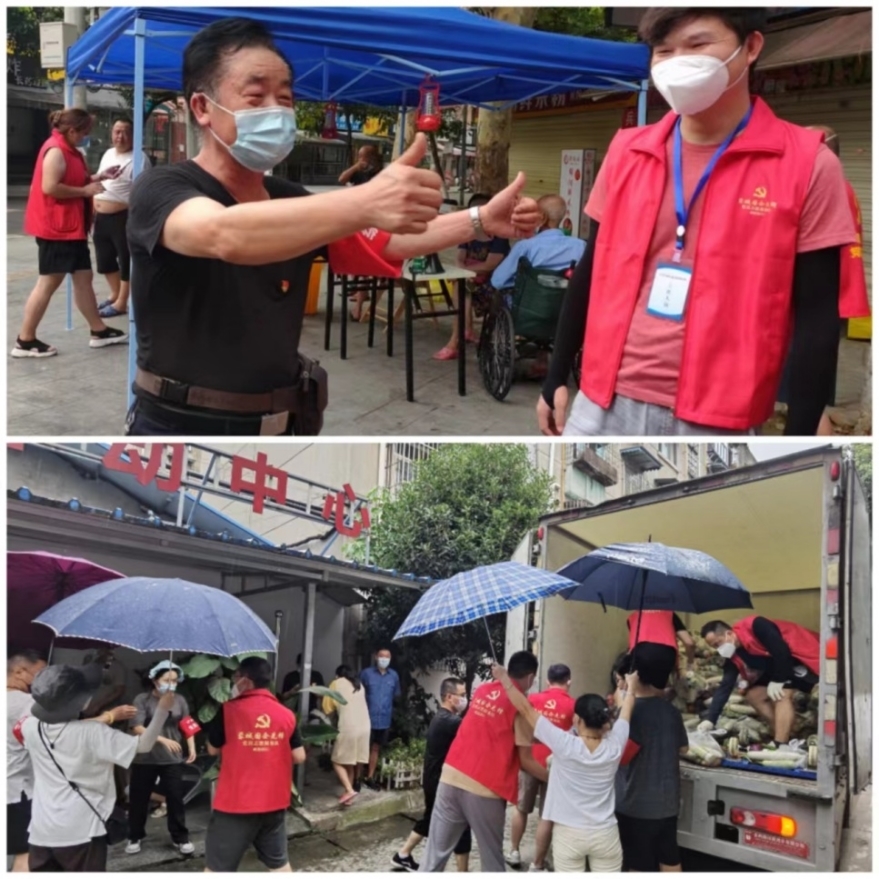 物资搬运1组负责三街坊社区9300户居民蔬菜包搬运,他们合理规划路线、采用接力流水线形式,从早上到中午,卸了几十车,搬了几百趟,确保午饭前所有居民拿到菜,居民们十分感动的唱起:“社会主义好,共产党万岁,成都银行志愿者了不起!”物资搬运分队8个小组,对口支援街道8个社区,全天搬运分发蔬菜达5万余份。