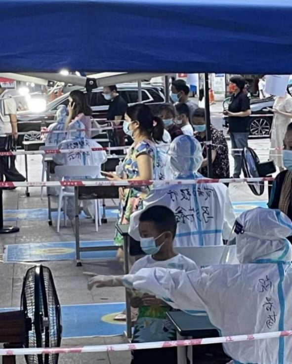 在白莲池街道一核酸采集点,志愿者接住高温中暑即将晕倒的小女孩,并立即将其送往应急处置点,进行急救;在保和社区,一位市民因上楼拿口罩,放心的将其不满一岁的婴儿交由志愿者看护。