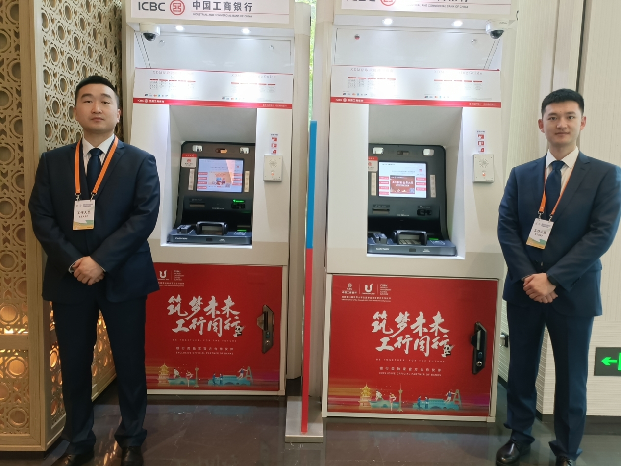 从3月28日起,在东安湖木棉花酒店,两台穿上大运会盛装的ATM机已布置到位,参加代表团团长春季会议的嘉宾们凭所持银行卡即可直接支取人民币现金。工商银行还在酒店门口配备了一辆流动银行车及零钞兑换点位,为参会嘉宾提供了全面的金融服务。